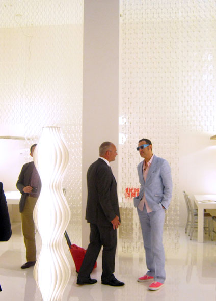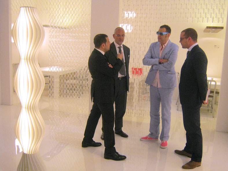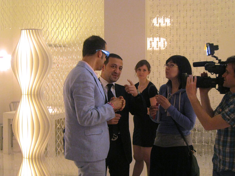 Компания Studio Italia Design приняла участие в ежегодной выставке Euroluce 2011. На стенде были показаны новые коллекции таких известных дизайнеров, как Карим Рашид, Дмитрий Логинов, Браян Рассмуссен, Карлос Жулио Рамирес и др. Инновационный дизайн и современные технологии совмещены в комфортном освещении для любых типов помещений. Стенд посетили порядка 30 000 как частных клиентов так и профессиональных архитектурных бюро, светотехнических компаний и дистрибьюторов со всего мира. Карим Рашид вместе со Studio Italia Design…. В рамках выставки Euroluce Стенд фабрики StudioItaliaDesign посетил знаменитый дизайнер Карим Рашид, с которым компания сотрудничает с этого года. Владельцы фабрики господа : Андреа и Массимильяно Тоссетто , а также руководитель представительства Studio Italia Design в странах СНГ Ашот Арутюнян отвечали на вопросы журналистов, а в частности программы «Дачный Ответ», эфир которой можно будет посмотреть на канале НТВ в середине мая 2011 года. Отвечая на вопрос тенденциях в мире освещения дизайнер сказал, что в его осветительных приборах воплощёны дизайн, креатив и инновационные технологии, в совокупности с необычными формами, придающими эмоции будующего. Немаловажным аспектом по воплощению своих идей являются производственные мощности фабрики, позволяющие получать сложнейшие формы, как из металла с покрытием, так и из стекла Мурано. Карим продолжит сотрудничество с компаниями Studio Italia Design и InteriorAgency и уже сейчас начинает работу над новой коллекцией 2012, которую Фабрика покажет на всемирной выставке Light+Building 2012 во Франкфурте. 18/04/11 В Милане в рамках выставки Евролуче 2011 компания Studio Italia Design и компания Interior Agency провели торжественный ужин для дистрибьюторов России, Армении, Украины и Казахстана. Друзьям было предложено изысканное меню тосканской кухни, а также несколько сортов вин премиум класса. Фабрика Studio Italia Design и Представительство в России и странах СНГ – компания Interior Agency сердечно благодарит всех присутствующих и надеется, данное мероприятие сделать доброй традицией на многие годы сотрудничесва. |